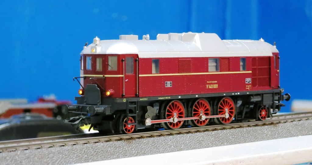 Diese V140 in der Delta-Ausführung konnte ich auf einer Börse günstig erwerben: Sie war als "defekt - fährt nicht" deklariert. Da sie neuwertig aussah, nahm ich an, sie sei nur verharzt; und richtig - ein Tropfen Öl an beiden Seiten des Rotors und die Lok fuhr los. Ergänzung vom 10.11.2013: das erwies