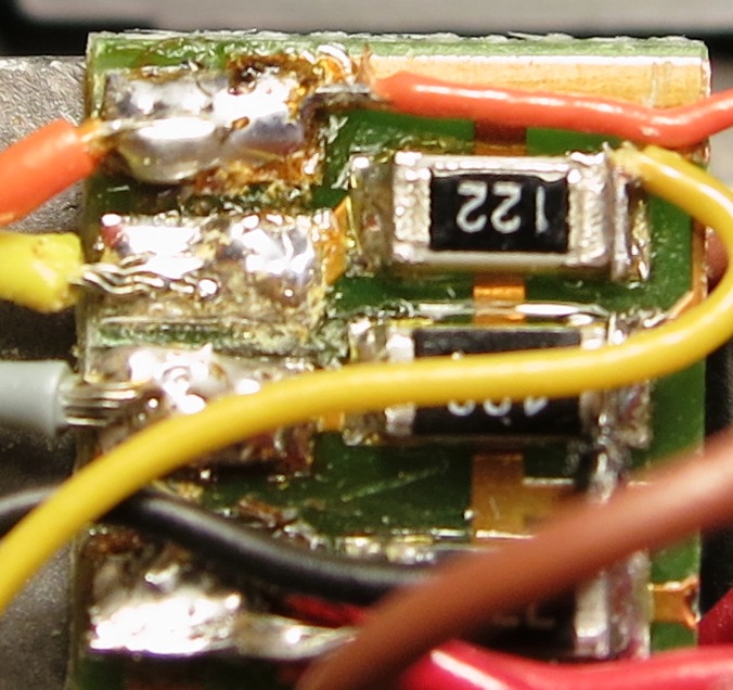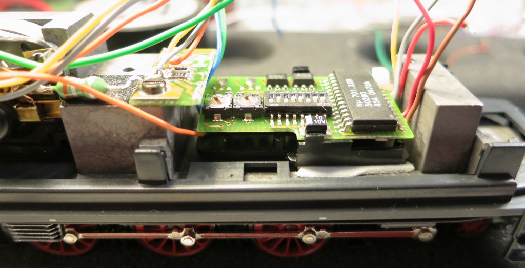 ich es nicht gereinigt hatte! Dieses Modell ist ursprünglich eine Trix-Entwicklung. Typisch für Trix-Modelle ist auch dieses Modell hervorragend gestaltet - ist aber im Vergleich zu "Standard"-Märklin-Modellen etwas anspruchsvoller für eine Digitalisierung. Unter anderem ist der Kontakt mit dem Schleifer erst 100% sichergestellt, wenn das Gehäuse wieder angeschraubt ist. Das erschwert die Tests während dem Umbau; z.B. um sicherzustellen, dass Licht und Fahrtrichtung übereinstimmen. Die Digitalisierung der V140 ist insofern nicht ganz trivial, als hier LED's zum Einsatz kommen und die Vorwiderstände auf der Delta-Platine verbaut sind. Ich habe es mir hier einfach gemacht und die vorhandenen SMD-Vorwiderstände der Delta-Platine weiterverwendet, indem ich die Ende der Platine abgesägt habe. Fazit nach diesem Umbau: