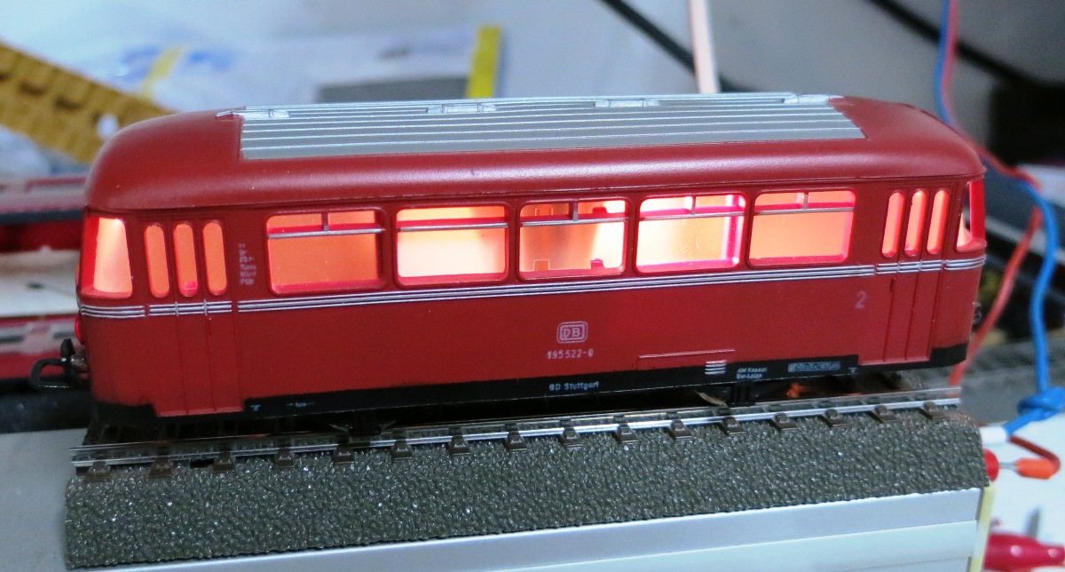 der Helligkeit der im Schienenbus 3016 verwendeten alten Lampen. |