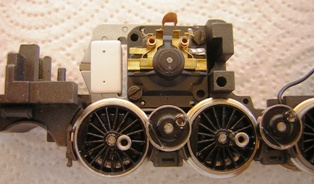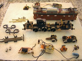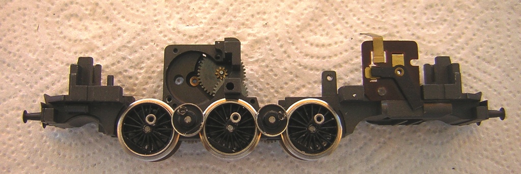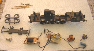vorne der alte Motor, die Vorlaufachsen, die alten steckbaren Glühlampen,