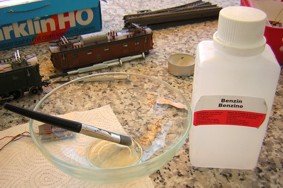 der Lokomotive mit Reinbenzin; obwohl der alte Motor nur wenige Runden