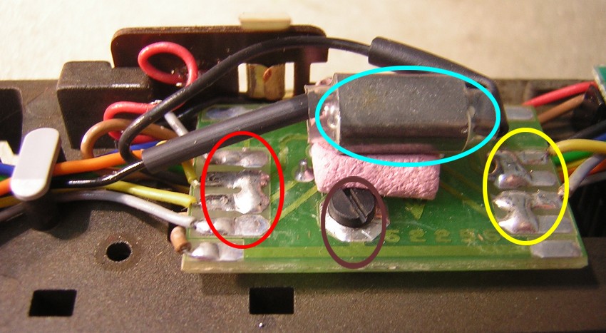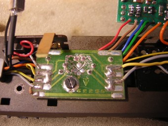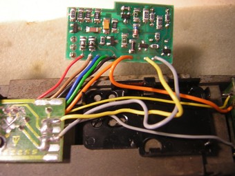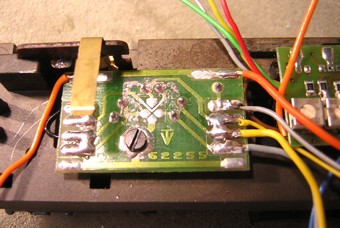 Im nebenstehenden Bild oben rechts sieht man wo ich das orange Kabel des Decoders auf der LWP angelötet habe. |