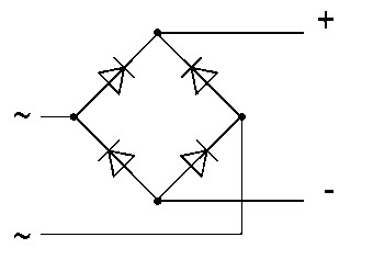 Anschlüsse links und rechts sind über 4 Dioden miteinander verbunden.