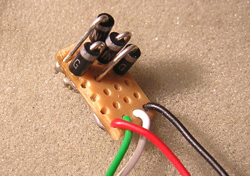 die 2 Eingänge vom elektronischen Umschalter welche über die 4 Dioden