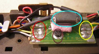 Schritt 3: Die Umschaltelektronik wird ausgeklipst. Die Anschlüsse von links nach rechts: | ![]() |