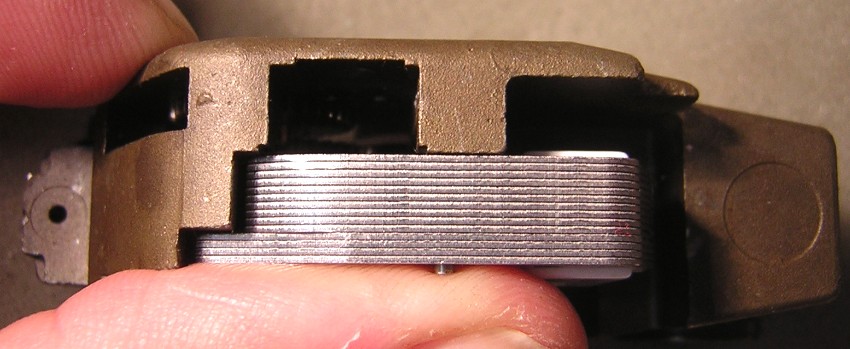13.1: Zuerst setzen wir den Permanentmagneten ein. Dieser hat auf beiden Seiten kleine Rastnasen welche das Teil im Motorblock fixieren. Der Magnet ist nicht symmetrisch und kann deshalb auch nicht verkehrt eingebaut werden.