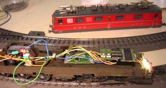 Nach dem Anlöten der beiden Kabel unbedingt alle Anschlüsse nochmals genau überprüfen. Danach kann man die Lok auf ein Gleis stellen (Analog oder Digital) und die Fahrtrichtung überprüfen. (selbstverständlich muss bei Digital die richtige Adresse gewählt respektive eingestellt werden) => Stimmt die Fahrtrichtung mit der Beleuchtung nicht überein, so müssen die beiden Drähte blau und grün getauscht werden. |