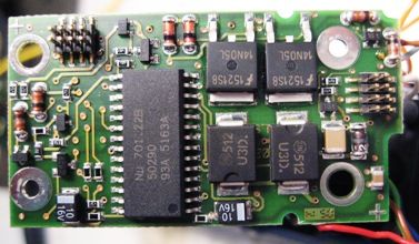 den Schleifer. Rechts die Anschlüsse für den Motor, die Innenbeleuchtung