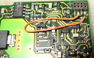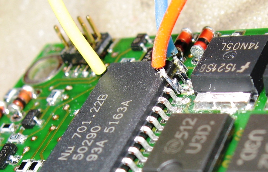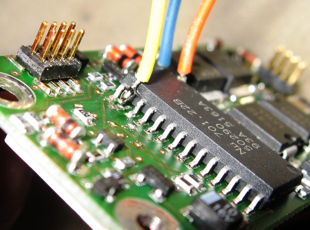 Die beiden Drähte an Pin 13 und 14 waren rasch angelötet und wurden mit
