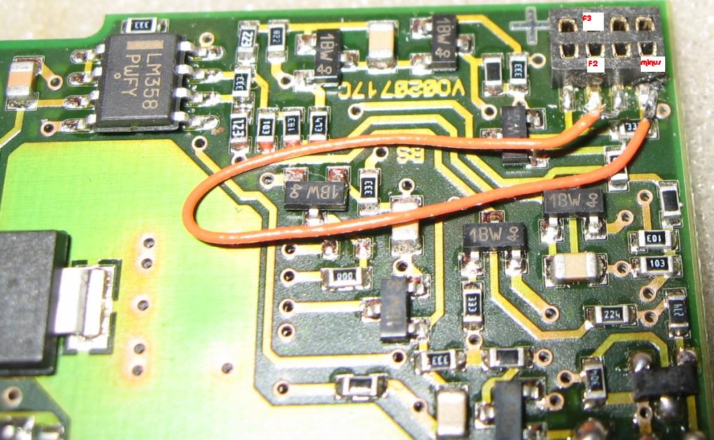 liegenden Verstärkerstufe für F2 mittels des orangen Kabels auf "minus"