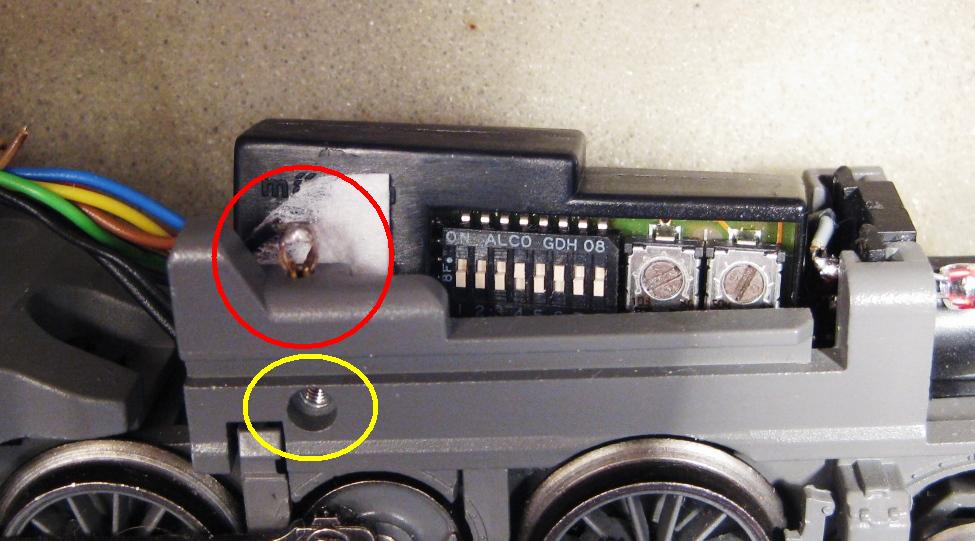 hat es auf der oberen Seite neben dem Decoder eine Stiftöse (roter Kreis)