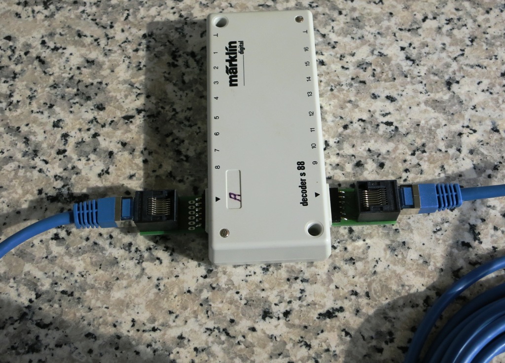 Der S88-A-BL wird am S88 Decoder Richtung "nächster Decoder" eingesteckt
