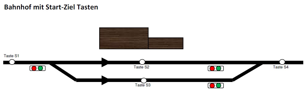 Gleisbildstellpult (GBS) mit Start-Ziel Tasten Im Zeitalter der Märklin CS2 oder der modernen Zentralen von ESU mit Gleisbildstellwerken auf einem Touchscreen ist u.U. nachfolgende Beschreibung nicht mehr so aktuell. Falls jemand trotzdem noch ein "hardwired" GBS mit Start-Ziel Tasten bauen möchte, könnte diese Info aber helfen. Bei allen Digital-Zentralen werden